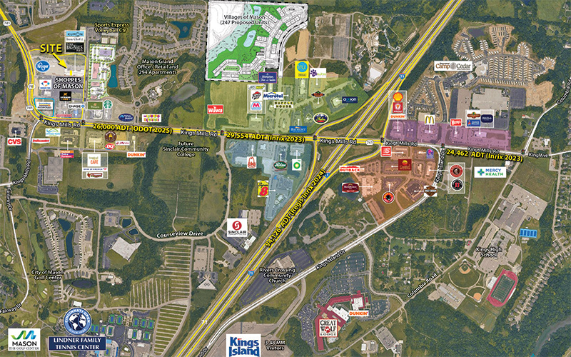 - Inline space available at this Kroger-anchored shopping center at the intersection of Kings Mills Road and SR 741 in Mason, Ohio